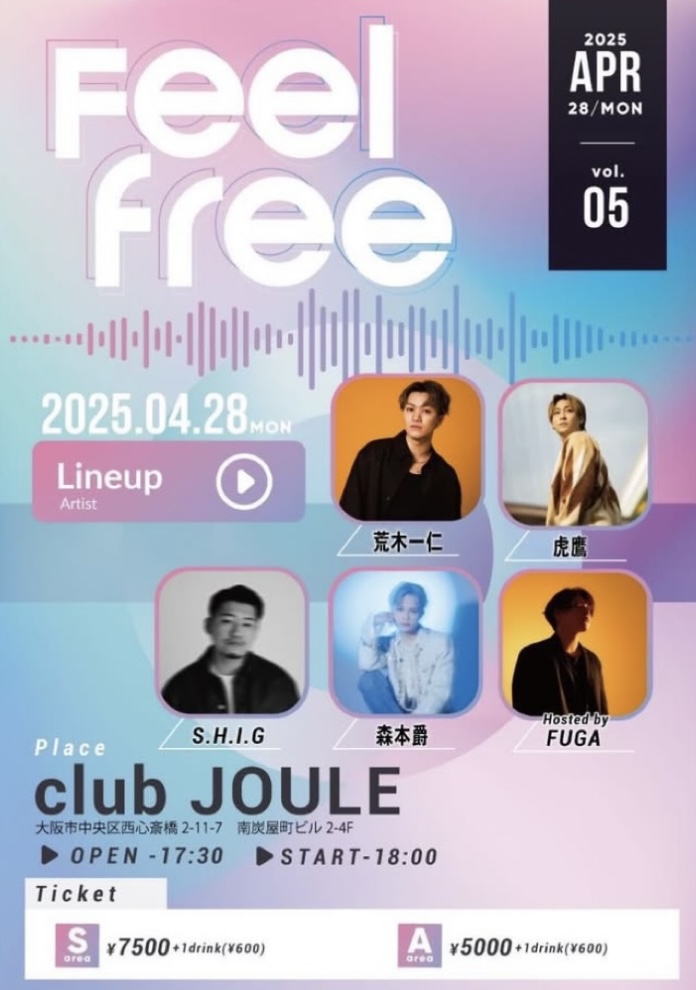 森本爵出演情報【4/28】Feel Free vol.5~hosted by FUGA~