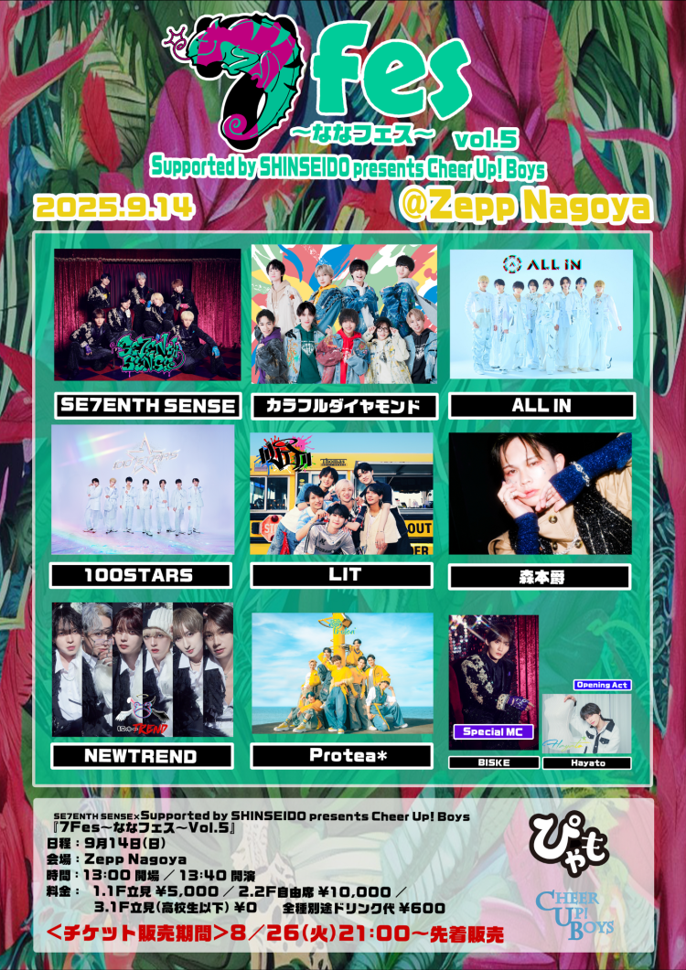 9/14(日)ななフェスvol.5 Supported by SHINSEIDO presents Cheer Up! Boys
