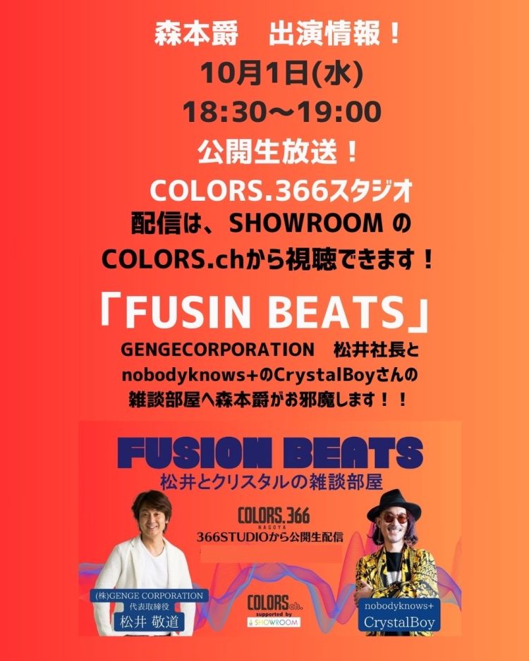 nobodyknows+の CrystalBoyさんの雑談部屋へ森本爵がお邪魔します!!