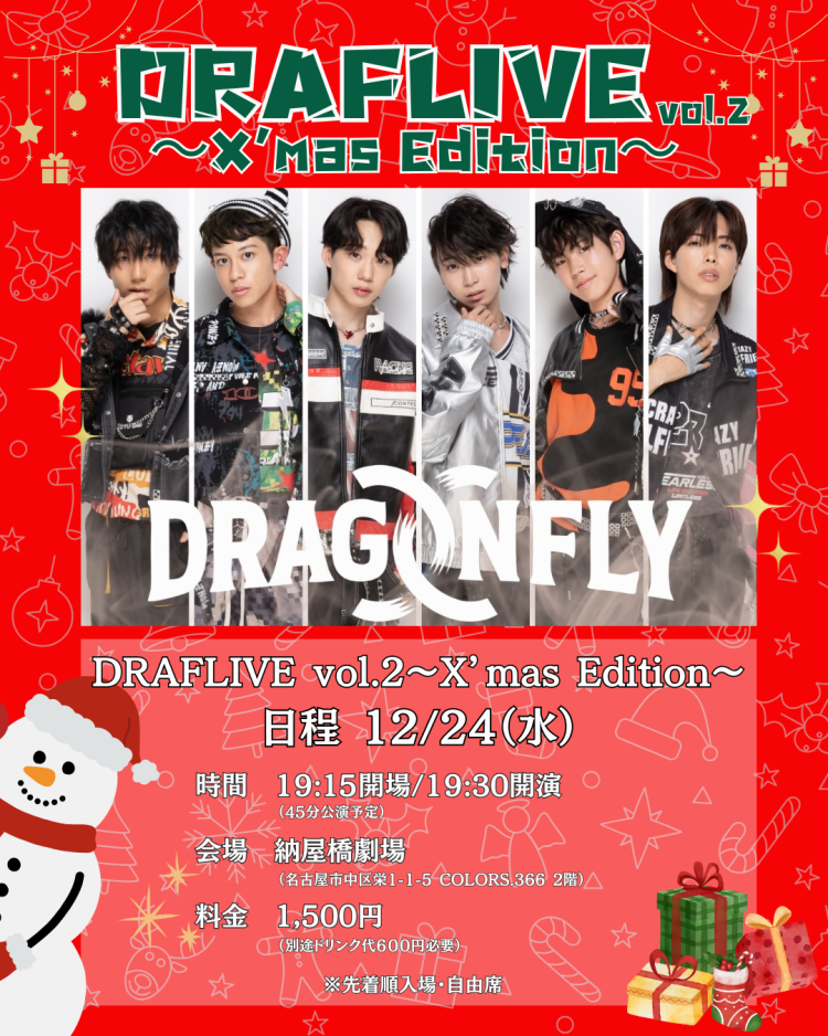 DRAGONFLY【12月24日】「DRAGONFLY クリスマスライブ」開催!
