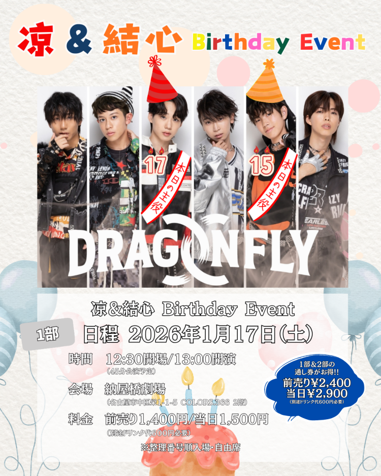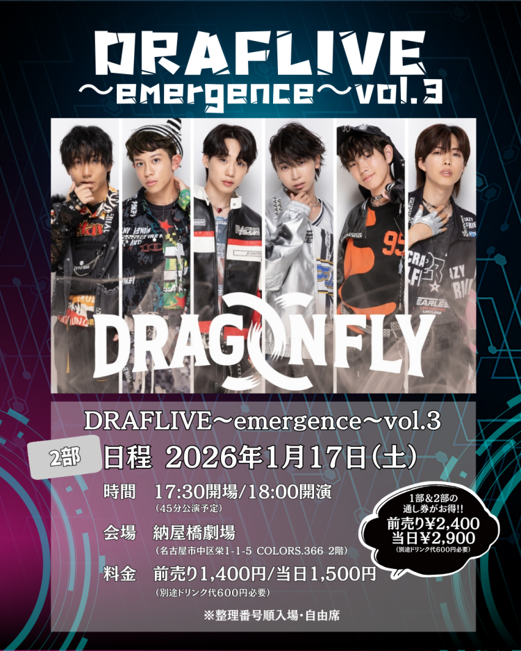 DRAGONFLY【2026年1月17日】2部制ライブ開催!