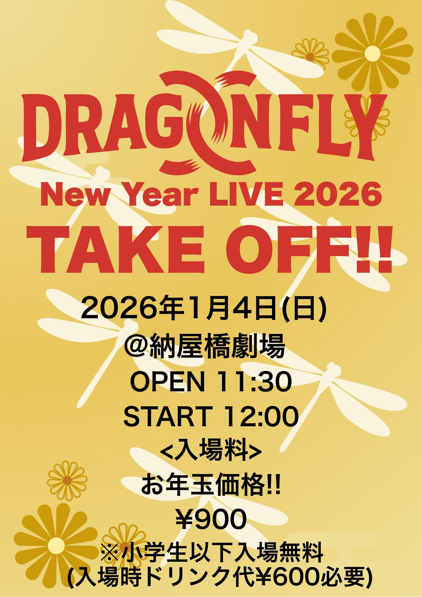 DRAGONFLY【1月4日(日)】New Year LIVE決定!!