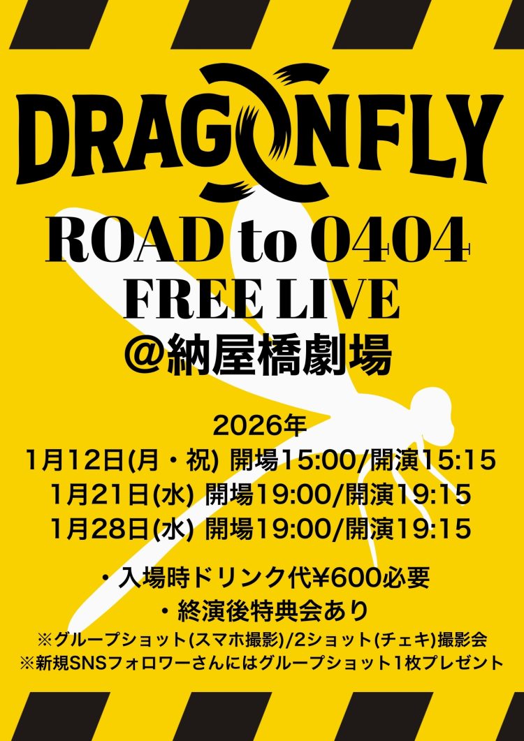 DRAGONFLY【1/12,1/21,1/28】『DRAGONFLY ROAD to 0404 FREE LIVE@納屋橋劇場』