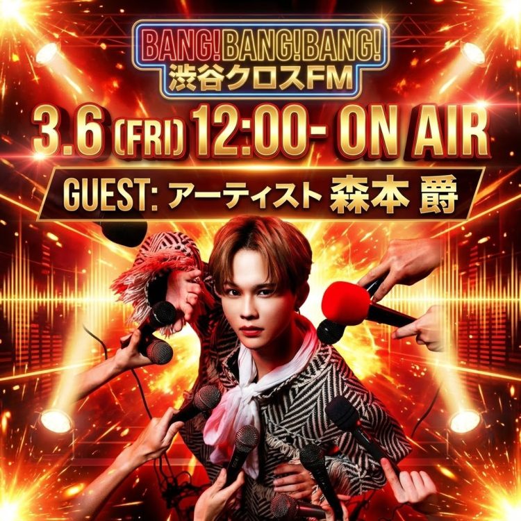 森本爵出演情報【3月6日】渋谷クロスFM「BANG!BANG!BANG!」に出演決定!